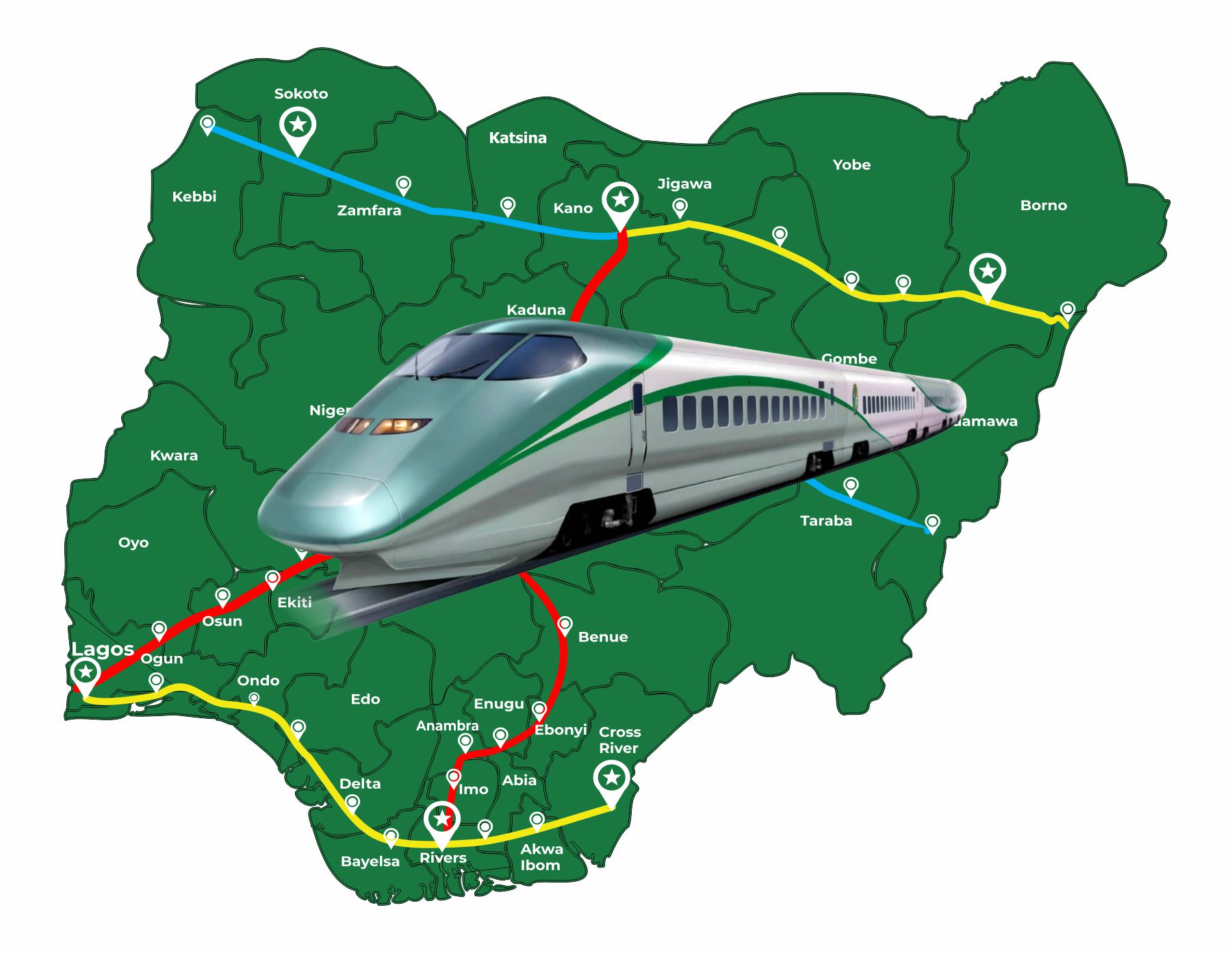 Due to pressures arising from meeting growing transit and freight demands in industries and congested, polluted cities, lack of energy in Nigeria; a dream was born. De-Sadel Group, with the power of foresight, research, innovation, and input from contributors from partners across the world, are embarking on a project that is first of its type in the entire continent of Africa. The Bullet-Train (Speed Train), by De-Sadel Group will sure change rail travel for passengers and freight in the very near future of Nigeria. Passengers and businesses shall travel by rail like never before in Nigeria and the most of Africa; faster, safe, reliable and relatively of no carbon emission.